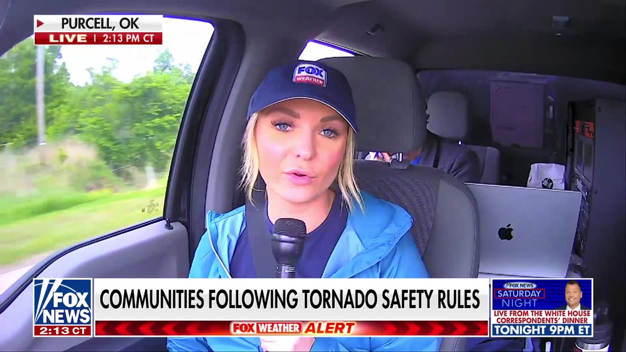 FOX Weather meteorologist Haley Meier reports on severe weather threatening the Southern Plains, including an EF4 tornado confirmed in Enid, Okla., and two tornadoes exhibiting the Fujiwhara effect near Braman.